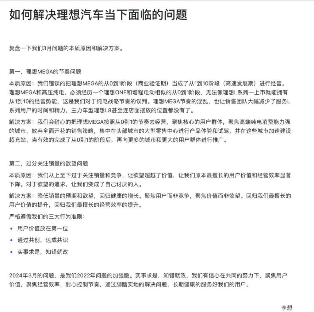 On March 21, Li Xiang, the CEO of LI AUTO, issued a letter to all employees internally, reflecting on the pace and sales of Ideal MEGA, and making targeted adjustments to product management, dealers, charging network layout, and sales expectations.